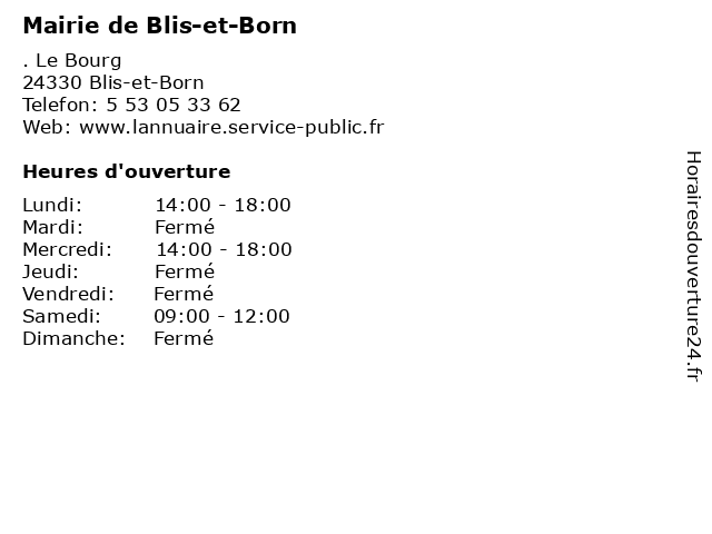Termes de recherche pour Mairie de Blis-et-Born:et, de, administration, mairie, born, assoc public, blis |