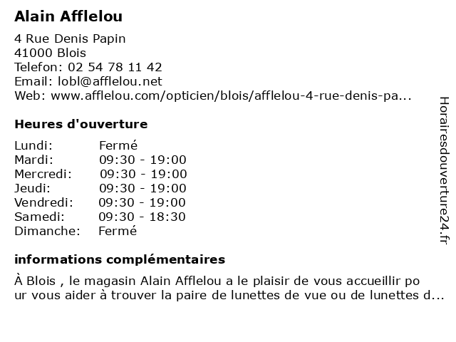 1 Alain Afflelou (Distance: 3,13 km) Zac Les Perrières, 41350 Vineuil afflelou, alain, cabinet d'ophtalmologie, magasin de lunettes de soleil, ophtalmologie, optométrie 2 Savy Frederick Andre Alain (Distance: 0,21 km) 25 Rue Des Violettes, 41000 Blois alain, andre, frederick, restaurants, savy 3 Dr Alain Duchalais - Anesthésiste (Distance: 1,58 km) - Mail Pierre Charlot, 41000 Blois alain, anesthésiste, consultation, docteur, dr, duchalais, med, médecin, traitement 4 Audioprothésiste Vineuil-Alain Afflelou Acousticien (Distance: 3,12 km) 48 Rue Bernard Palissy, 41350 Vineuil acousticien, afflelou, alain, audiologie, audioprothésiste, clinique médicale, vineuil 5 Audioprothésiste Blois-Alain Afflelou Acousticien (Distance: 3,32 km) 3 Rue Du Bout Des Haies, 41000 Blois acousticien, afflelou, alain, audiologie, audioprothésiste, blois, clinique médicale 6 Maître Alain Chaumier - Avocat (Distance: 3,46 km) 8 rue Louis Pasteur, 41260 La Chaussée-Saint-Victor alain, avocat, avocats, chaumier, civils, droits, juridiques, maître |