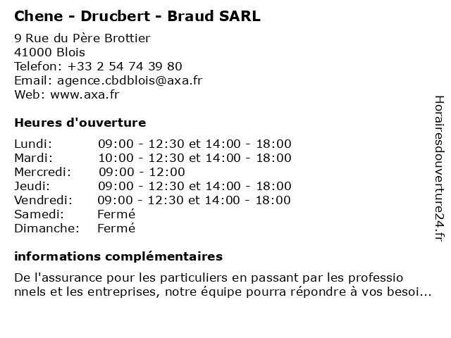| Lundi | 09:00-12:30 et 14:00-18:00 |
