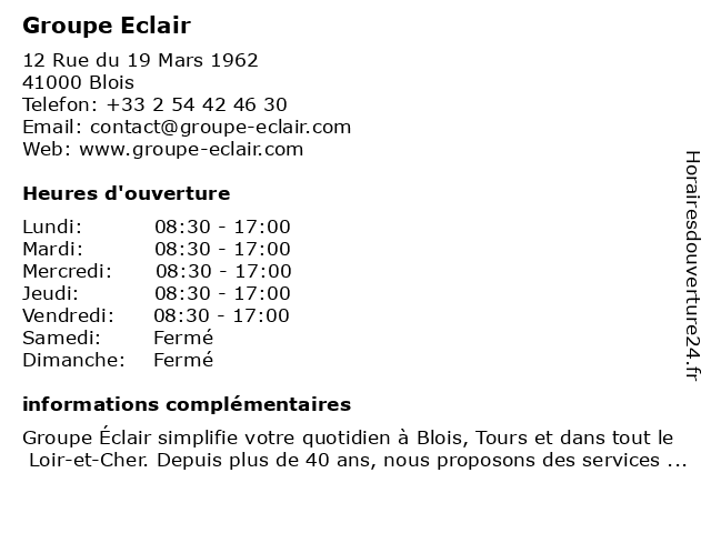 2 Chavigny Energie Blois - Groupe Chavigny (Distance: 0,18 km) 36 avenue de Vendôme, 41000 Blois blois, béton, chavigny, energie, fournisseur, groupe 3 Groupe Alternance (Distance: 1,09 km) 7 Avenue Robert Schuman, 41000 Blois alternance, bachelor, bts, diplôme, formation, groupe, supérieure, école 4 Groupe Victor Hugo Mutuelle (Distance: 1,29 km) 19 Rue Porte Côte, 41000 Blois assurance, groupe, habitation, hugo, mutuelle, protection, prévoyance, santé, senior, victor 5 Chavigny Expo Villebarou - Groupe Chavigny (Distance: 1,98 km) 5 Rue de la Garbotière, 41000 Villebarou béton, chavigny, d'exposition, expo, fournisseur, groupe, salle, villebarou 6 |