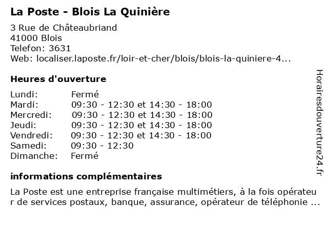 Termes de recherche pour La Poste - Blois La Quinière:poste, relais, la, blois, agence, postale, colis, expédition, courriers, quinière |