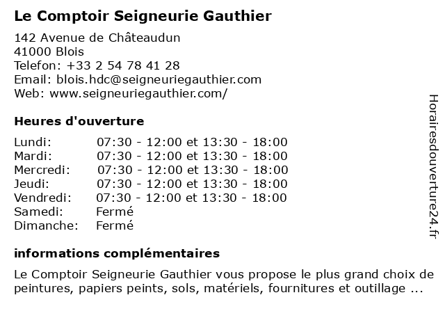 | Lundi | 07:30-12:00 et 13:30-18:00 |