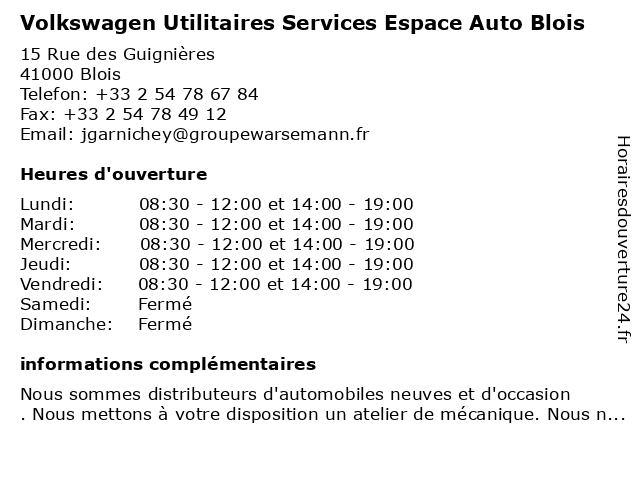 | Mercredi | 08:30-12:00 et 14:00-19:00 |
