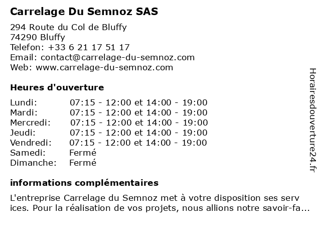 | Lundi | 07:15-12:00 et 14:00-19:00 |