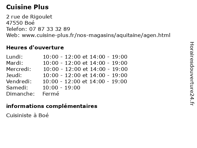 | Jeudi | 10:00-12:00 et 14:00-19:00 |