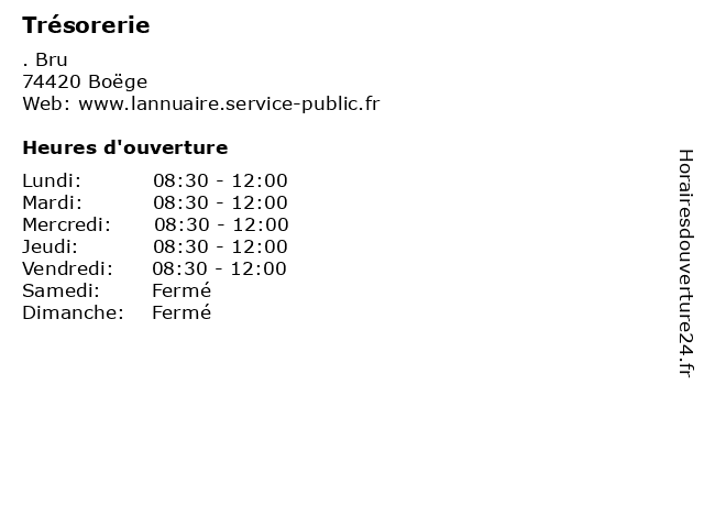 1 Trésorerie de Saint-Jeoire-Boëge (Distance: 8,56 km) 00 Place Germain-Sommeiller, 74490 Saint-Jeoire boëge, de, jeoire, public, saint, saint-jeoire, trésor, trésorerie 2 Trésorerie d'Annemasse (Distance: 11,73 km) 3 rue Marie Curie, 74100 Annemasse alpes, alpes-léman, annemasse, centre, d'annemasse, des, du, hospitalier, léman, trésorerie 3 Trésorerie de Reignier-Ésery (Distance: 12,82 km) 47 Rue du Docteur Goy, 74930 Reignier administration, de, finances, impôts, public, publiques, reignier, trésor, trésorerie, ésery 4 Trésorerie de Douvaine (Distance: 13,53 km) . Place de l'Hôtel-de-Ville, 74140 Douvaine de, douvaine, public, trésor, trésorerie 5 Trésorerie de Bonneville (Distance: 14,05 km) 340 quai du Parquet, 74137 Bonneville bonneville, de, public, trésor, trésorerie 6 Trésorerie de La Roche-sur-Foron (Distance: 17,04 km) . Place Andrevetan, 74800 La Roche-sur-Foron de, foron, la, public, roche, roche-sur-foron, sur, trésor, trésorerie |