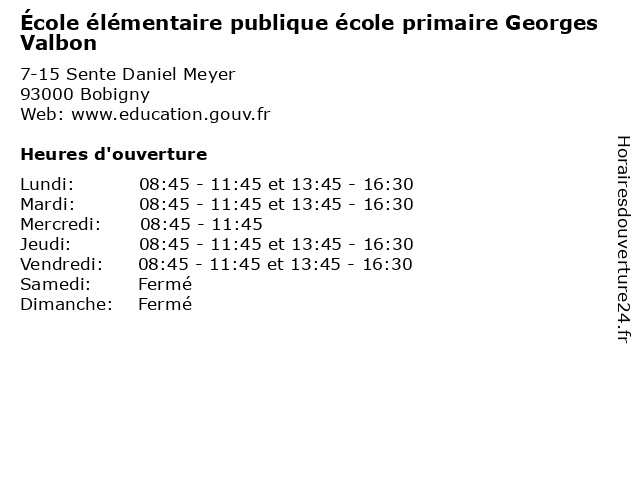 | Lundi | 08:45-11:45 et 13:45-16:30 |