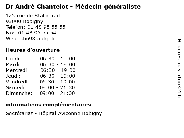 | Lundi | 06:30-19:00 |