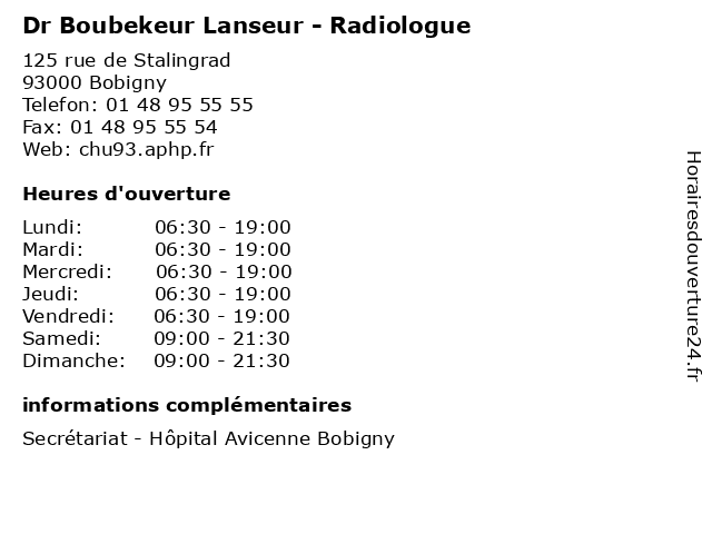 1 Boubekeur Belkacem (Distance: 8,21 km) 184 Avenue De Clichy, 75017 Paris belkacem, boubekeur, restaurants 2 Maître Iliana Boubekeur - Avocate (Distance: 8,40 km) 17 rue de la Paix, 75002 Paris avocate, avocats, boubekeur, cabinet, conseils, contentieux, iliana, juridique, justice, litiges, maître, services 3 Sahli Boubekeur (Distance: 11,04 km) 27 Quai d Alfortville, 94140 Alfortville boubekeur, restaurants, sahli 4 Dr Boubekeur Bennadji - Gastro-entérologue (Distance: 33,68 km) 40 avenue Serge Dassault, 91106 Corbeil-Essonnes bennadji, boubekeur, cancer, cancérologie, ch, corbeil, dr, entérologie, entérologue, essonnes, francilien, gastro, sud 5 Dr Lalia Boubekeur - Pneumologue (Distance: 42,91 km) 270 avenue Marc Jacquet, 77000 Melun boubekeur, consultation, docteur, dr, lalia, med, médecin, pneumologue, traitement 6 Dr Nicolas Sellier - Radiologue (Distance: 0,00 km) 125 rue de Stalingrad, 93000 Bobigny consultation, docteur, dr, med, médecin, médecine, nicolas, radiologue, sellier, traitement |