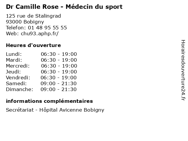 1 Dr Tiana Raoul - Médecin du sport (Distance: 0,00 km) 125 rue de Stalingrad, 93000 Bobigny consultation, docteur, dr, du, med, médecin, médecine, raoul, sport, tiana, traitement 2 Dr Camille Baudry - Endocrinologue (Distance: 0,00 km) 125 rue de Stalingrad, 93000 Bobigny baudry, camille, consultation, docteur, dr, endocrinologue, med, medecine, medical, médecin, traitement 3 Dr. Camille Rondenet - Radiologue (Distance: 0,00 km) 125 rue de Stalingrad, 93000 Bobigny camille, consultation, docteur, dr., med, médecin, médecine, radiologue, rondenet, traitement 4 Sport des Marques (Distance: 0,50 km) 60 rue Saint Stenay, 93700 Drancy alimentation, beauté & santé, culture & loisirs, des, enfants, high-tech, maison & déco, marques, mode, restaurants, sport 5 Dr Camille Cordier - Médecin généraliste (Distance: 0,88 km) 2 Avenue Aimé Césaire, 93500 Pantin camille, cordier, dr, généraliste, médecin, médecine, médical, pharmaceutique, traitement 6 Centre aquatique Camille Muffat (Distance: 1,43 km) 176 Avenue Jean Jaurès, 93300 Aubervilliers aquatique, camille, centre, muffat |