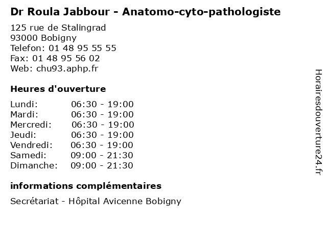 | Lundi | 06:30-19:00 |