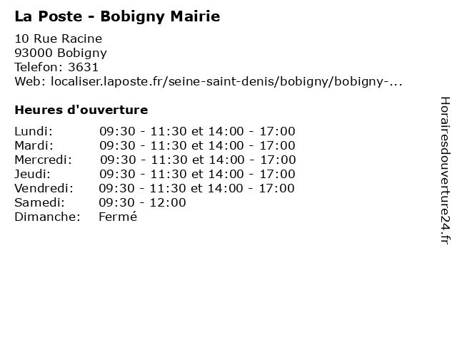 Termes de recherche pour La Poste - Bobigny Mairie:poste, relais, la, bobigny, mairie, agence, postale, colis, expédition, courriers |