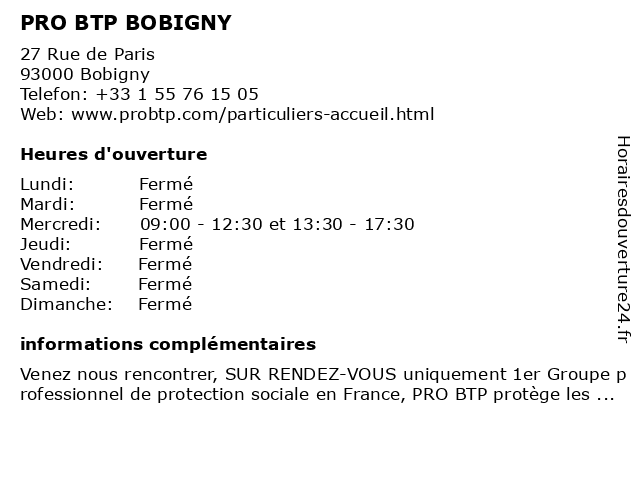 | Mercredi | 09:00-12:30 et 13:30-17:30 |