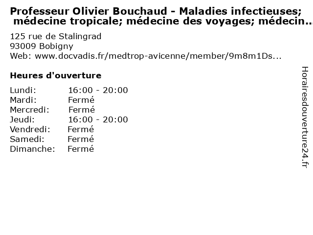 Termes de recherche pour Professeur Olivier Bouchaud - Maladies infectieuses; médecine tropicale; médecine des voyages; médecine des migrants. (Consultation sur rendez-vous):sur, des, vous, olivier, medecine, santé, rendez, docteur, médecins, bouchaud, consultation, professeur, maladies, infectieuses;, migrants., tropicale;, voyages; |