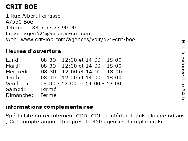 1 CRIT VILLENEUVE SUR LOT (Distance: 25,61 km) 1 Avenue Jacques Bordeneuve, 47300 Villeneuve-sur-Lot crit, lot, sur, villeneuve |