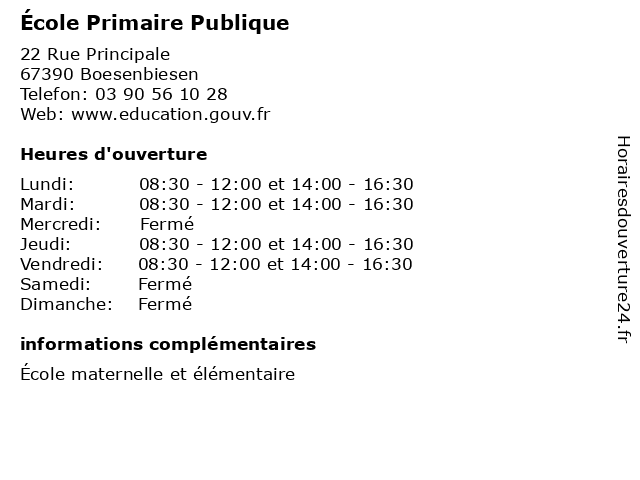 1 École Primaire Publique (Distance: 2,00 km) 7 Rue Principale, 67600 Baldenheim cours, education, primaire, publique, services, école 2 École Primaire Publique (Distance: 2,25 km) 9 Rue Principale, 67390 Artolsheim cours, education, primaire, publique, services, école 3 École Primaire Publique (Distance: 4,84 km) 30 Rue Principale, 67390 Mackenheim cours, education, primaire, publique, services, école 4 École Primaire Publique (Distance: 6,96 km) 48 Rue Principale, 67600 Hilsenheim cours, education, primaire, publique, services, école 5 École Primaire Publique (Distance: 7,09 km) 1 Rue du Sel, 67600 Bindernheim cours, education, primaire, publique, services, école 6 École Primaire Publique (Distance: 8,75 km) 2 Rue de l'école, 67390 Elsenheim cours, education, primaire, publique, services, école |