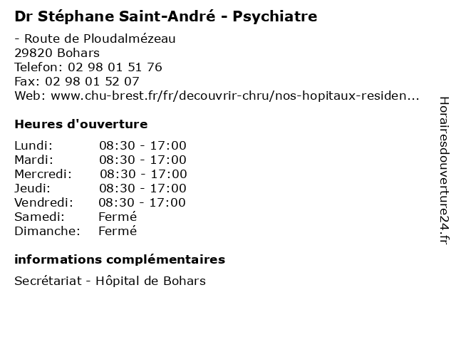 1 Dr Myriam Sabri - Psychiatre (Distance: 0,00 km) - Route de Ploudalmézeau, 29820 Bohars consultation, docteur, dr, med, myriam, médecin, psychiatre, sabri, traitement 2 Dr Pierre Bodenez - Psychiatre (Distance: 0,00 km) - Route de Ploudalmézeau, 29820 Bohars bodenez, consultation, docteur, dr, med, médecin, pierre, psychiatre, traitement 3 Dr Catherine Bordage - Psychiatre (Distance: 0,00 km) - Route de Ploudalmézeau, 29820 Bohars bordage, catherine, consultation, docteur, dr, med, médecin, psychiatre, traitement 4 Dr Marc-André Tran - Médecin généraliste (Distance: 4,24 km) 30B Rue Professeur Langevin, 29200 Brest andré, benic, consultation, de, docteur, dr, dr., et, générale, généraliste, horaires, marc, medecins, médecin, médecine, santé, tran 5 André (Distance: 5,71 km) 50 rue Jean Jaurès, 29200 Brest andré, chaussures, enfant, femme, homme, mode, nouveautés 6 Dr André Dizien - Médecin généraliste (Distance: 5,93 km) 3 Rue Fautras, 29200 Brest andré, dizien, docteur, dr, generaliste, généraliste, medical, médecin, soin |