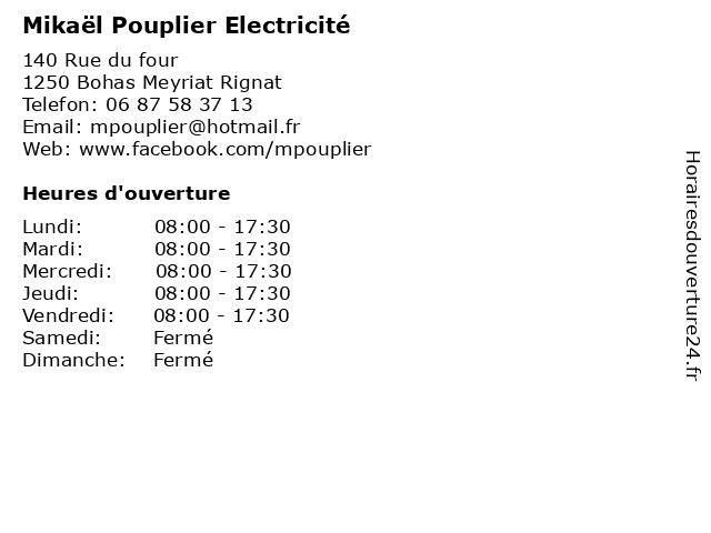 | Mardi | 08:00-17:30 |