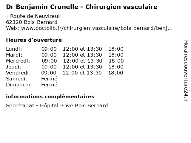 1 Dr Pierre de Temmerman - Chirurgien vasculaire (Distance: 0,00 km) - Route de Neuvireuil, 62320 Bois-Bernard chirurgien, consultation, de, docteur, dr, med, médecin, médecine, pierre, temmerman, traitement, vasculaire 2 Dr Damien Labbe - Chirurgien vasculaire (Distance: 0,00 km) - Route de Neuvireuil, 62320 Bois-Bernard chirurgien, consultation, damien, docteur, dr, labbe, med, médecin, médecine, traitement, vasculaire 3 Medecin Olivier Fabre (Chirurgien thoracique et cardio-vasculaire) ) (Distance: 1,04 km) . Route de Neuvireuil, 62320 Bois-Bernard cardio, chirurgien, docteur, et, fabre, medecin, olivier, sante, services, thoracique, vasculaire 4 Dr Benjamin Flinois - Médecin généraliste (Distance: 2,00 km) 7 ter Route d’Arras, 62320 Drocourt benjamin, docteur, dr, flinois, generaliste, généraliste, medical, médecin, soin 5 Dr Benjamin Mortelecque - Médecin généraliste (Distance: 8,91 km) 7 Rue Anne Frank, 62950 Noyelles-Godault benjamin, docteur, dr, généraliste, mortelecque, médecin, santé 6 Dr Benjamin Longere - Radiologue (Distance: 9,78 km) 99 Route de la Bassée, 62307 Lens benjamin, consultation, docteur, dr, longere, med, médecin, médecine, radiologue, traitement |