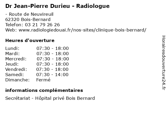 | Vendredi | 07:30-18:00 |