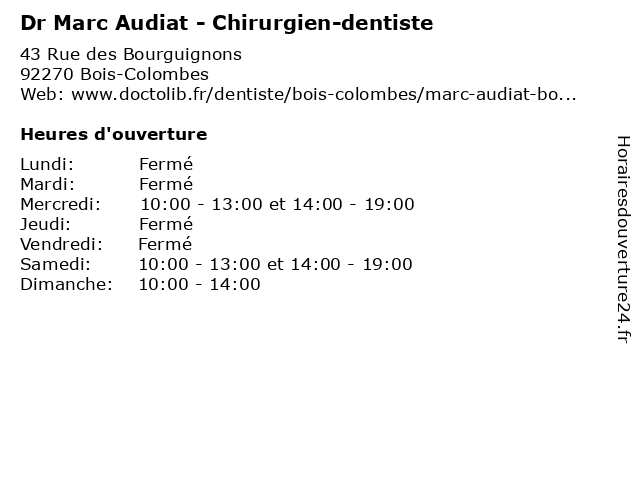 | Mercredi | 10:00-13:00 et 14:00-19:00 |