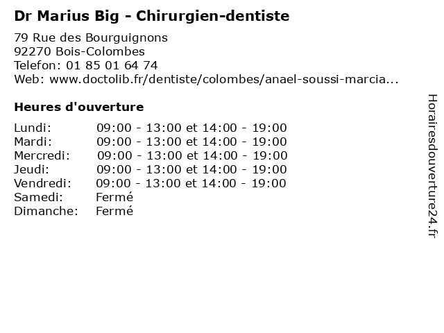 | Lundi | 09:00-13:00 et 14:00-19:00 |