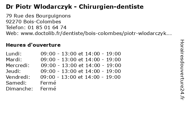 1 Maître Julien Wlodarczyk - Avocat (Distance: 5,19 km) 7 Rue de Téhéran, 75008 Paris avocat, droit, julien, maître, négociation, wlodarczyk 2 Piotr Strzalka - Masseur-kinésithérapeute (Distance: 13,13 km) 14 rue de la Beaune, 93100 Montreuil consultation, docteur, kinésithérapeute, masseur, med, medecine, medical, médecin, piotr, strzalka, traitement 3 Dr Amy Diouf - Chirurgien-dentiste (Distance: 0,00 km) 79 Rue des Bourguignons, 92270 Bois-Colombes amy, chirurgien, dent, dentiste, diouf, docteur, dr, soins 4 John Robert Barksenius - Chirurgien-dentiste (Distance: 0,00 km) 79 Rue des Bourguignons, 92270 Bois-Colombes barksenius, chirurgien, dent, dentiste, docteur, john, robert, soins 5 Madalina Todor - Chirurgien-dentiste (Distance: 0,00 km) 79 Rue des Bourguignons, 92270 Bois-Colombes chirurgien, dent, dentiste, docteur, madalina, soins, todor 6 Dr Blanche Delcourt - Chirurgien-dentiste (Distance: 0,00 km) 79 Rue des Bourguignons, 92270 Bois-Colombes blanche, chirurgien, delcourt, dentaire, dentiste, dr, implantologie, parodontologie |