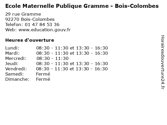 | Mardi | 08:30-11:30 et 13:30-16:30 |