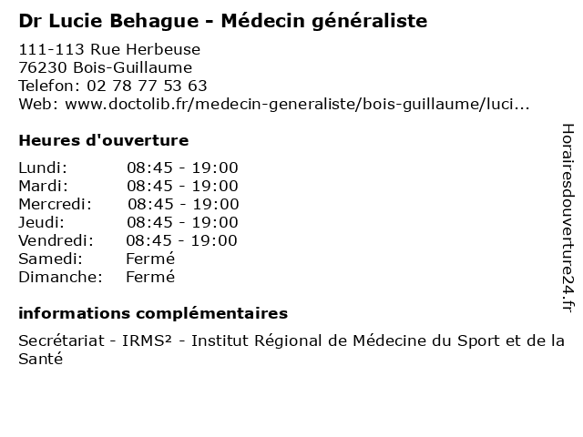 | Lundi | 08:45-19:00 |