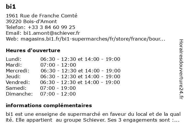 | Mercredi | 06:30-12:30 et 14:00-19:00 |