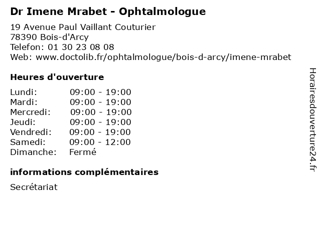 | Lundi | 09:00-19:00 |