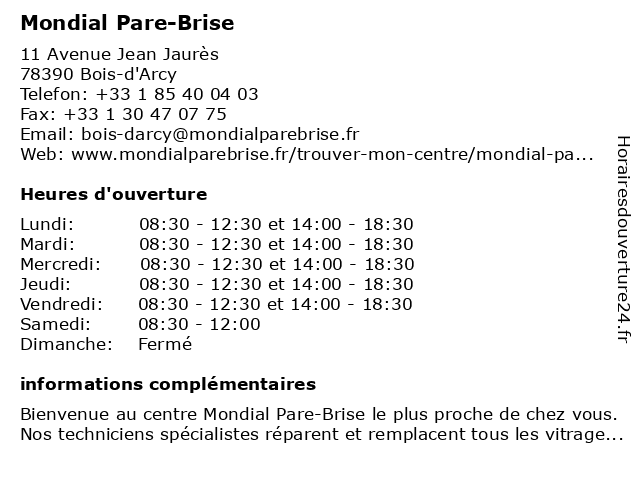 | Lundi | 08:30-12:30 et 14:00-18:30 |