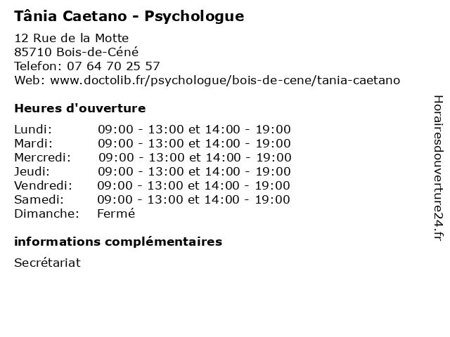 | Lundi | 09:00-13:00 et 14:00-19:00 |