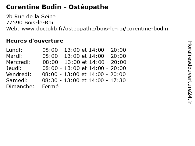 | Samedi | 08:30-13:00 et 14:00-17:30 |