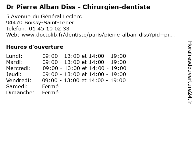 | Lundi | 09:00-13:00 et 14:00-19:00 |