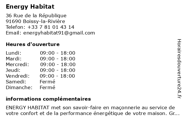 Horaires d'ouverture |