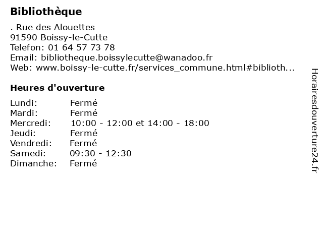 | Mercredi | 10:00-12:00 et 14:00-18:00 |