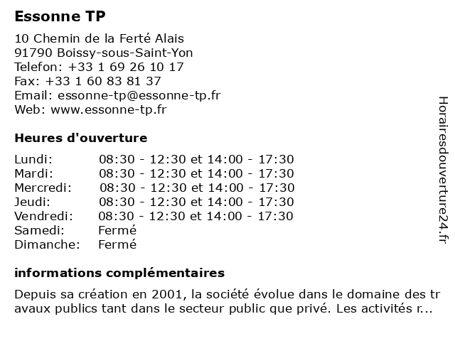 | Lundi | 08:30-12:30 et 14:00-17:30 |