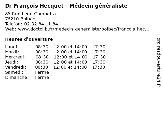 | Lundi | 08:30-12:00 et 14:00-17:30 |