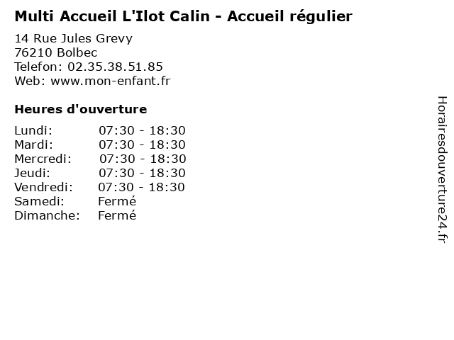 | Lundi | 07:30-18:30 |