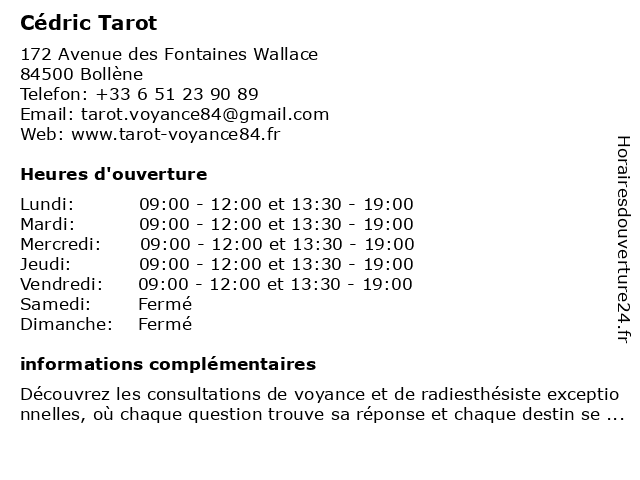 | Mardi | 09:00-12:00 et 13:30-19:00 |