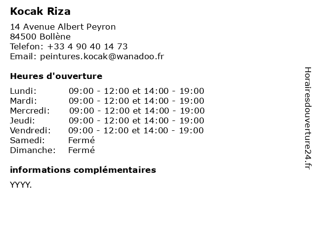 | Mercredi | 09:00-12:00 et 14:00-19:00 |