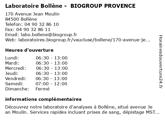 Termes de recherche pour Laboratoire Bollène - BIOGROUP PROVENCE:provence, laboratoire, bollène, biogroup, dépistages, laboratoire de diagnostic |
