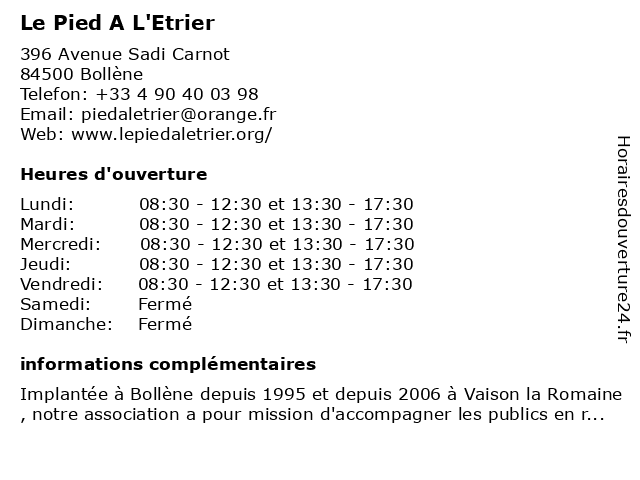 | Lundi | 08:30-12:30 et 13:30-17:30 |