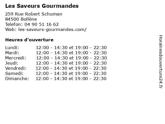 | Mardi | 12:00-14:30 et 19:00-22:30 |