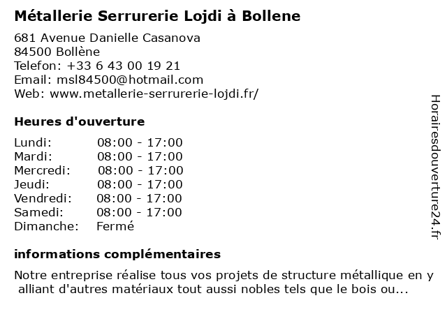 Termes de recherche pour Métallerie Serrurerie Lojdi à Bollene:serrurerie, bollène, métallerie, lojdi |