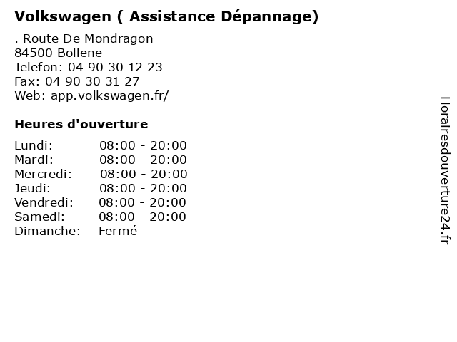 1 Volkswagen (Distance: 0,00 km) . Route De Mondragon, 84500 Bollene automobiles, concessionnaire, garage, motos, volkswagen 2 Volkswagen ( Activités Véhicules Neufs) (Distance: 0,00 km) . Route De Mondragon, 84500 Bollene activités, automobiles, concessionnaire, garage, motos, neufs, volkswagen, véhicules 3 Volkswagen ( Activités Véhicules dOccasion) (Distance: 0,00 km) . Route De Mondragon, 84500 Bollene activités, automobiles, concessionnaire, doccasion, garage, motos, volkswagen, véhicules 4 Volkswagen ( Atelier Mécanique) (Distance: 0,00 km) . Route De Mondragon, 84500 Bollene atelier, automobiles, concessionnaire, garage, motos, mécanique, volkswagen 5 Volkswagen ( Atelier Peinture Carrosserie) (Distance: 0,00 km) . Route De Mondragon, 84500 Bollene atelier, automobiles, carrosserie, concessionnaire, garage, motos, peinture, volkswagen 6 Assistance Routière (Distance: 1,04 km) 9062 Avenue Salvador Allende, 84500 Bollène assistance, routière |