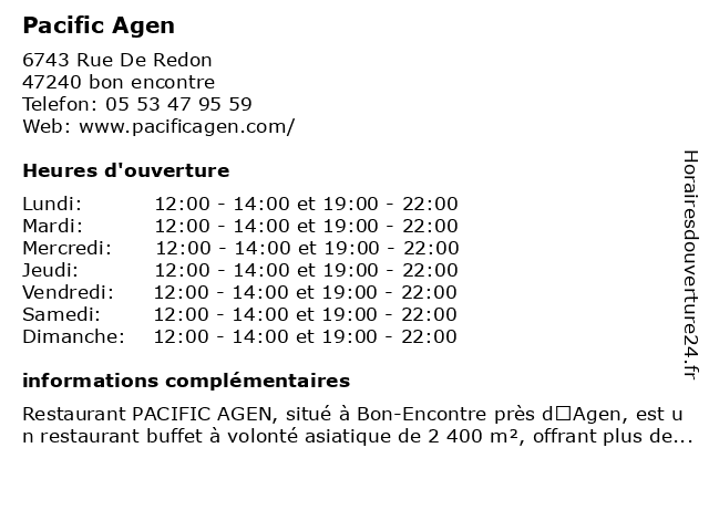 | Dimanche | 12:00-14:00 et 19:00-22:00 |