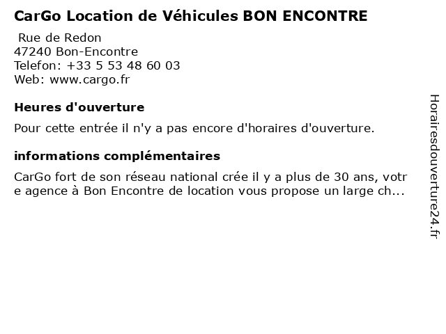 | Appeler CarGo Location de Véhicules BON ENCONTRE | |
