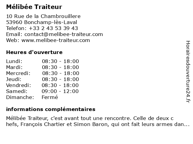 1 Flunch Traiteur (Distance: 2,55 km) 60 avenue de la Communauté Européenne, 53000 Laval boisson, cafétéria, dessert, flunch, plats, restaurant, traiteur 2 Rivière David BR Traiteur (Distance: 3,02 km) 120 Rue De Paris, 53000 Laval boucher, boucherie, br, charcuterie, david, rivière, traiteur, viande, épicerie 3 Restaurant Traiteur Tom Pouss (Distance: 3,27 km) Cap Commerce, 53000 Laval pouss, restaurant, restaurants, tom, traiteur 5 Maison Sauvage Traiteur (Distance: 8,15 km) - Rue de Pont au chat, 53000 Laval buffets, maison, restauration, sauvage, traiteur 6 Traiteur Les Délices (Distance: 13,16 km) 16 Rue Jean-Baptiste Robin, 53940 Ahuillé délices, les, traiteur |